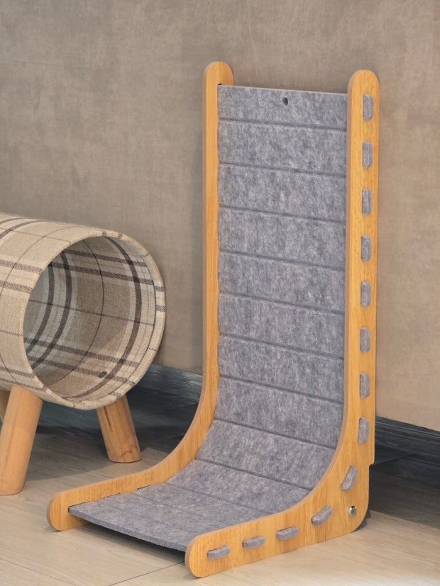 고양이의 조상은 야생에서 적을 피하고 사냥감을 잡기 위해 나무처럼 높은 곳에 올라갔다고 합니다. 높은 곳에서 사냥감도 잡고 은신도 할 수 있어 자주 올랐기 때문에 고양이는 높은 곳을 아주 잘 올라갑니다. 실내에서 사는 고양이들에게도 물론 나무와 같은 수직 공간이 필요합니다. 그래서 야생의 사냥 본능도 충족시켜 주고 활동량도 늘려주는 수직 공간이 되어주는 아이템이 캣타워입니다. 캣타워는 소재에 따라 나무, 철재, 종이 등으로 종류가 다양합니다. 아무래도 중앙의 캣폴과 캣폴에 달려있는 해먹이나 구조물이 흔들리지 않는 튼튼한 제품을 선택하셔야 고양이가 위험하지 않고 편안하게 오르락내리락할 수 있습니다. 캣타워 외에도 가구들을 계단 형식으로 배치하면 자연스럽게 왔다 갔다 할 수 있어 좋은 수직 공간이 될 수도 있습니다.